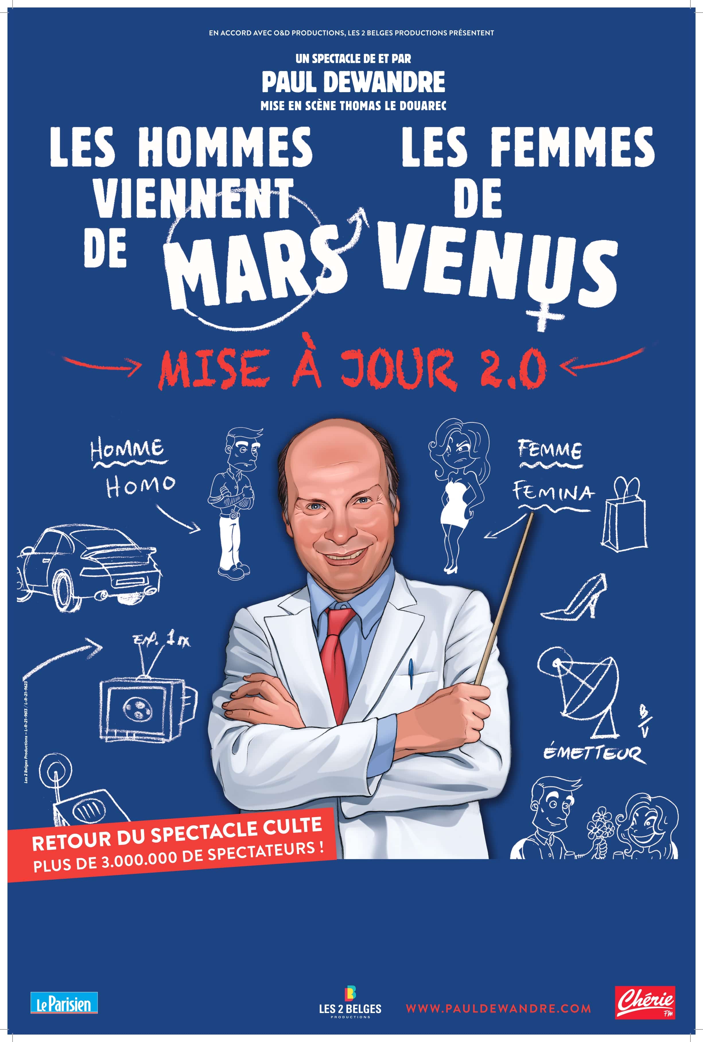 À une époque où les relations hommes-femmes sont plus que jamais questionnées, Paul Dewandre nous entraîne avec humour et tendresse dans une exploration des différences qui nous rapprochent. Loin des clichés, ce spectacle célèbre la compréhension, l’égalité et surtout… l’amour !