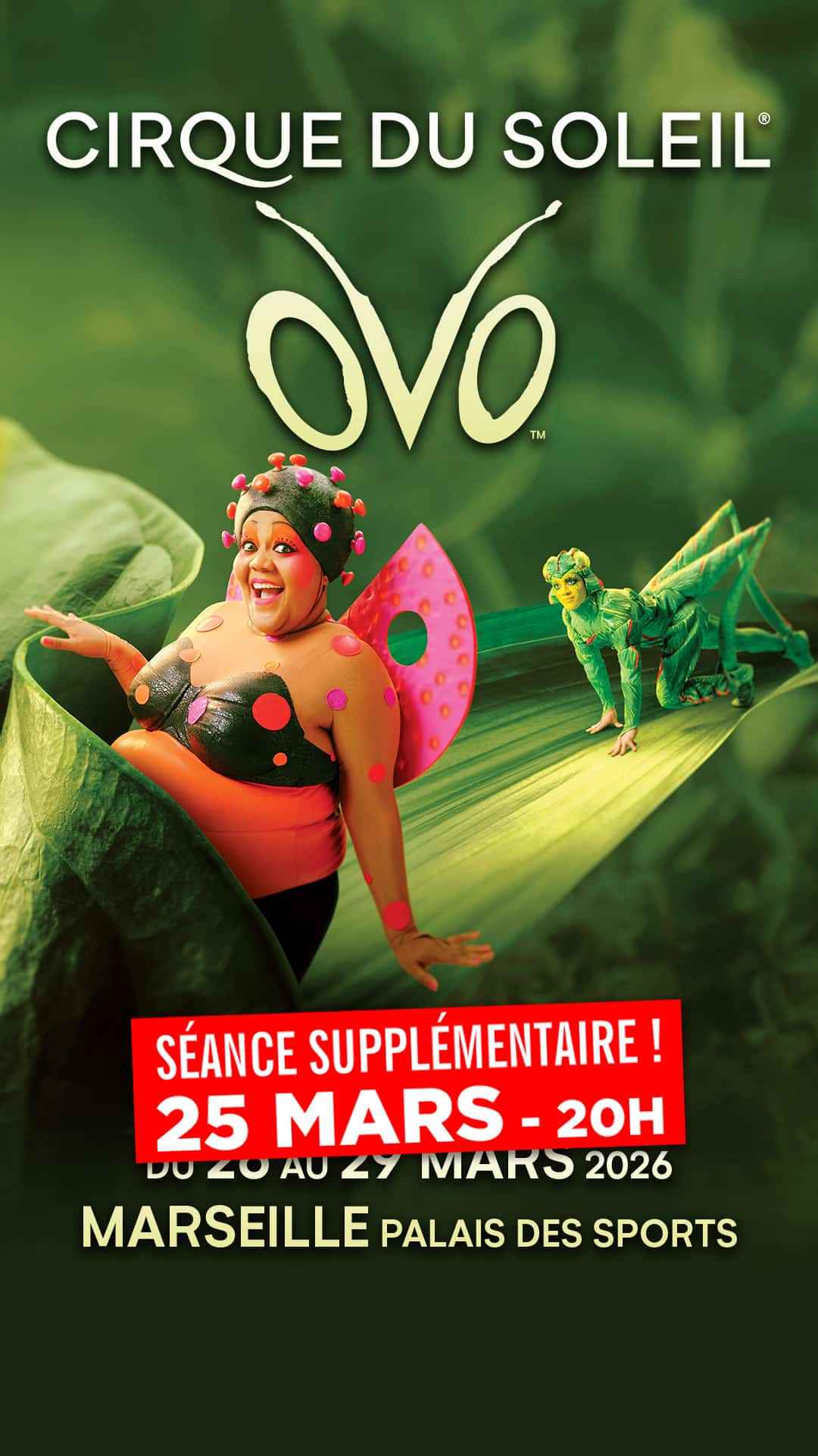 La production grandiose du Cirque du Soleil, OVO (qui signifie « œuf » en portugais), arrive à Marseille du 25 au 29 Mars 2026 pour une série de représentations exceptionnelles — une expérience scénique inédite à ne pas manquer. Revu et enrichi, ce spectacle débordant de couleurs, d’énergie et d’acrobaties vertigineuses transporte le public de tous âges dans un univers féerique où les insectes bondissent, virevoltent et s’élèvent dans les airs, dans une célébration éclatante de la vie et de la vitalité.